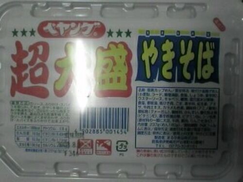 カロリー表示を確認すると、ひとつで、1000キロカロリーを超えています。 塩分も、4グラムを超えています。 おそろしく、不健康な感じがします。 ふたを開けると、普通サイズの麺が二個入っています。 かやく、ソース、ふりかけは、普通な感じで、2倍感はあ…