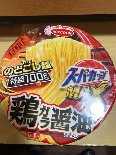 エースコック スーパーカップMAX 鶏ガラ醤油 小腹が空いたので、店内販売商品を買って食べた。